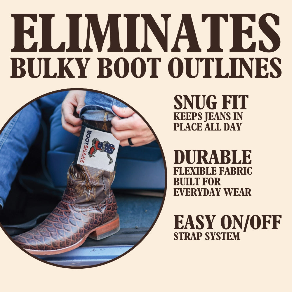 Our New and Limited RWB Bootstraps are designed to transform the shaft of your boot just below the calf giving you a clean or flush look under your favorite pair of jeans or pants without tapin', tyin', or lyin' about how you got them to look so good. The RWB straps feature an extra durable Red White & Blue Patch that is guaranteed to stand out.